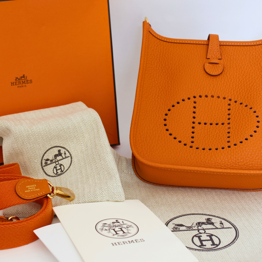 This brand new, box fresh example is in the glorious Hermes orange with canvas crossbody strap, original box, dustbags, receipt, etc.